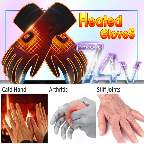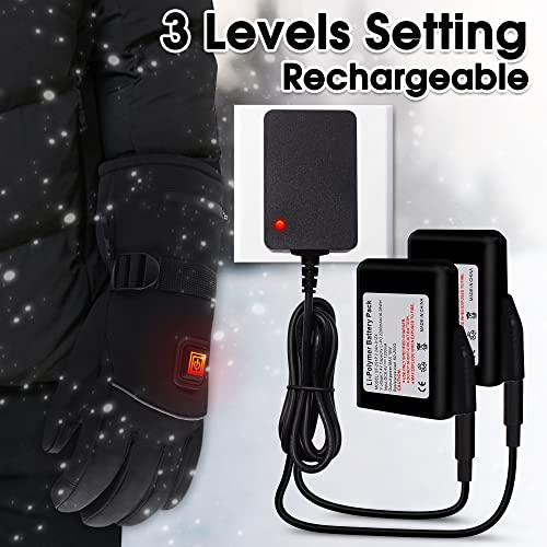 3 Setting Temperatures: Rechargeable electric heated gloves powered by 7.4V Li-ion battery (INCLUDE), stronger battery life, more stable and safer. Three temperature modes to meet your warmth needs in different weather, even in the lowest heat mode, your hands will stay warm for a long time.