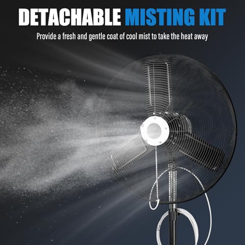 MISTING PEDESTAL - Detachable misting kit to providing a gentle and feather light mist. Misting kit is easy to install, and Fan can operate alone as a powerful cooling force.