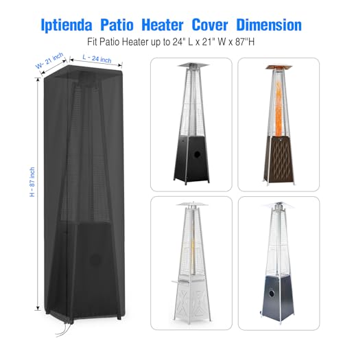 Upgraded Heavy Duty Material & Well Made: Iptienda Outdoor Heater cover is Made of High quality waterproof 420D oxford cloth, high-density stitching for durability, against rain, snow, sun. tear resistance, weather-resistant, dust-proof, We patio heater cover can extend your patio heater longer life?due to the covers is waterproof fabric, No problem with outdoor Storage, Protect your heater drying anytime