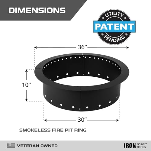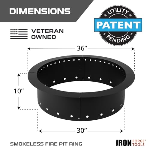 PATENT PENDING - CREATE MEMORIES AROUND THE FIRE: Elevate your outdoor fireside experience by installing the Iron Forge Heavy Duty Metal Smokeless outside firepit for patio. ONCE INSTALLED IN FIREPIT. you'll enjoy endless nights of relaxation with friends and family. Crafted for durability, this 36-inch outer/30-inch round fire pit insert ensures a safe and cozy atmosphere for outdoor gatherings.