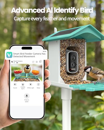 AI-Powered Bird Identification: Advanced camera recognizes over 16000 bird species; Get instant app notifications for feathered visitors without disturbing them.