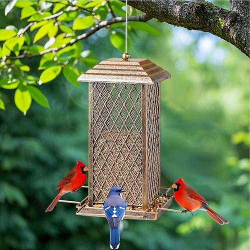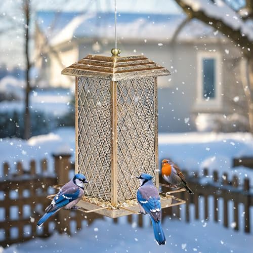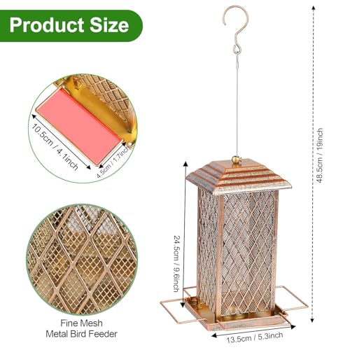 Durable Bird Feeder: Our wild bird feeder is made of high-quality iron with copper-plated surface, giving the bird feeder a classic and elegant look. The surface has an anti-rust coating, which is corrosion-resistant and durable.