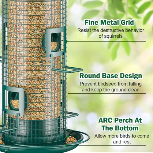 ?Sturdy and durable: Chew proof & rust-proof metal design? The all-weather wild bird feeder is made of high-quality rust-proof metal. The metal mesh and metal feeding port can block the teeth of squirrels, which is more durable than general metal bird feeders.