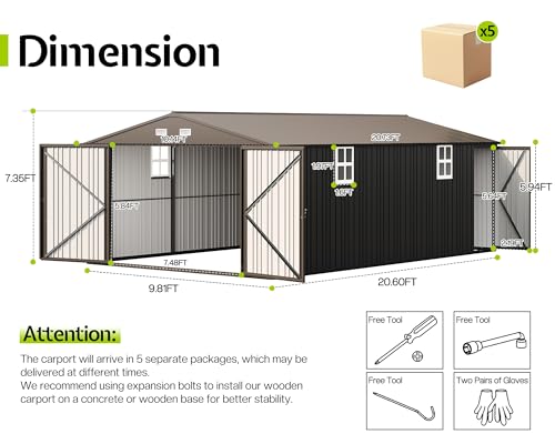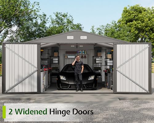 Spacious Design: Measuring 13.2x20.7x8 FT, this metal garage offers 1682 Cu.ft space to protect your vehicles, RVs, or outdoor equipment from the elements, ensuring they stay safe and dry