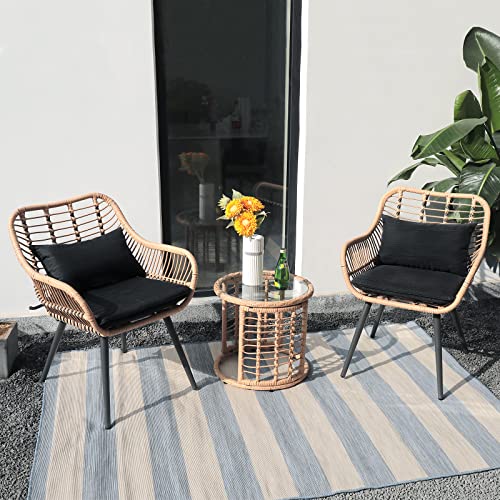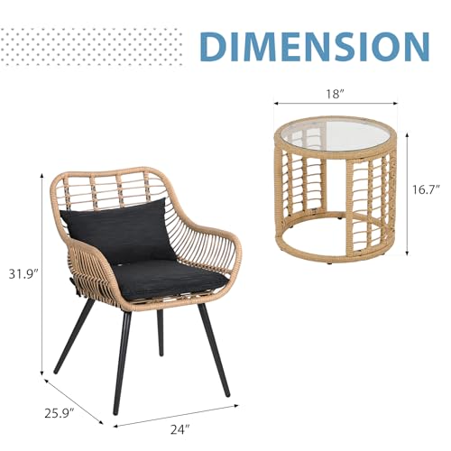 Sturdy & Durable Construction: Our patio bistro set is made of powder-coated steel frame which is sturdy, rust-resistant, and crack-resistant. Each seat can hold up to 250 lbs. Plus, the frame of this patio set is covered with hand-woven PE wicker, featuring weather and UV resistant. So this patio furniture is suitable for year-round outdoor use