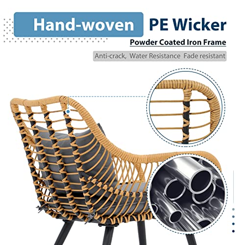 Sturdy & Durable Construction: Our patio bistro set is made of powder-coated iron frame which is sturdy, rust-resistant, and crack-resistant. Each seat can hold up to 250 lbs. Plus, the frame of this patio set is covered with hand-woven PE wicker, featuring weather and UV resistant. So, this patio furniture is suitable for year-round outdoor use