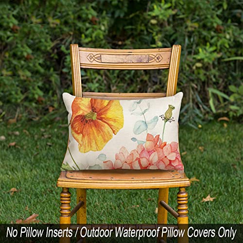 ?Cute Colorful Outdoor Porch Decor? A set of 4 watercolor look outdoor lotus flower summer lumbar throw pillow cover 12 x 20 inch. No Lumbar Pillow Inserts.
