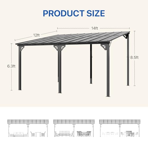 The carbon steel frame and triangular metal structure significantly enhance the durability, stability, and sturdiness of our patio pergola. Designed to provide partial shade and define an outdoor space, it adds both functionality and style. Please note that this pergola is wall-mounted and must be installed on a wall to ensure optimal performance.
