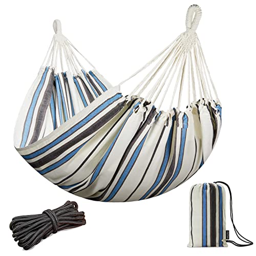 Comfortable Fabric: This Brazilian hammock is made of densely woven skin-friendly cotton/polyester canvas fabric, which is comfortable, breathable and sturdy , also durable.