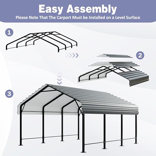 Sturdy and Durable: Protect your vehicles and outdoor tools from harsh weather with this sturdy and durable carport. Its high-quality galvanized steel roof provides excellent anti-rust and sun protection, ensuring reliable protection for your belongings. With a 12x15 foot footprint, this metal carport offers ample space for cars, boats, and outdoor equipment, providing a versatile solution for your needs.