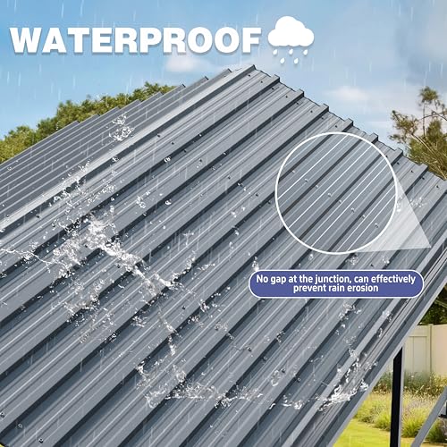 Attractive Design: The galvanized steel roof adds a sleek, modern look to your outdoor space. Around the panel, we also attached protective tape to prevent you from being scratched by the sharp panel.