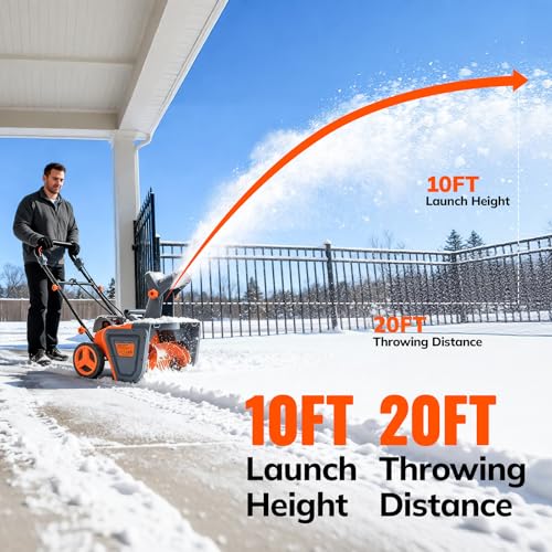 ?180° Adjustable Chute with 25ft Throw Distance?Easily control snow direction with the 180° adjustable chute. The snow thrower launches snow up to 25ft away and 10ft high, keeping walkways, cars, and entrances clear. No more piles of snow blocking your path