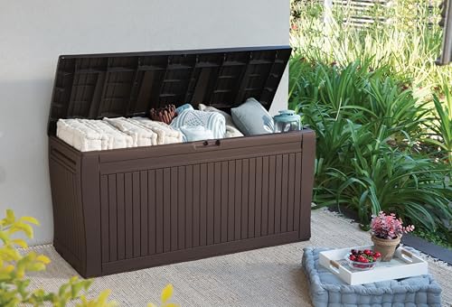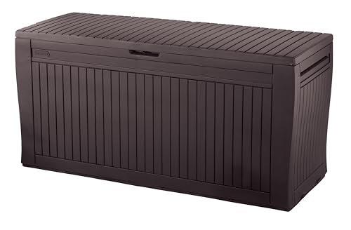 Keter Comfy 71 Gallon Resin Plastic Wood Look All Weather Outdoor Storage Deck Box, Brown