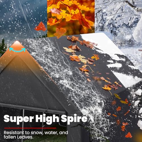 ?Super Peak Style Roof & Anti-Snow?The top is designed with a super peak style shape, which avoids standing water and snow, increase the service life of the garage.
