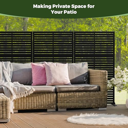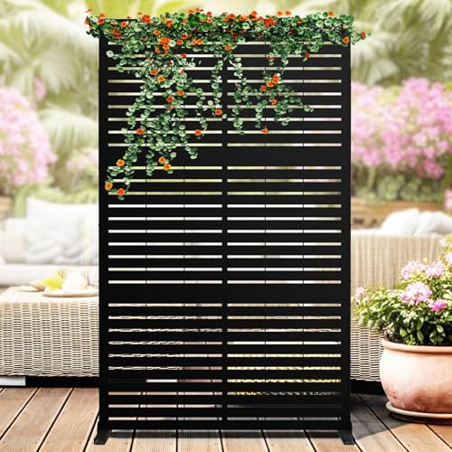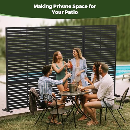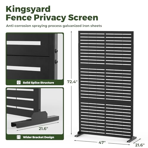 HIGH QUALITY METAL MATERIAL: Kingsyard metal privacy fence is made of high quality metal, the metal panels and brackets are strong and sturdy. The metal surface adopts baking paint process, which is waterproof, sunproof, rustproof and corrosion-resistant, which can withstand the wind, rain and sun in the outdoor area and is durable. Precautions! If the place where the fence is located is often windy, it is recommended to fix it on the ground with the equipped ground stakes or expansion screws to prevent the fence from tipping over.