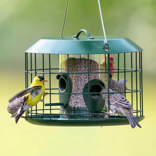 Small Bird Focus : Caged bird feeders to keep out squirrels. 1.5"x1.5" mesh openings welcome goldfinches, chickadees & house finches safely. Make it harder for squirrels, pigeons, and starlings to feed, save birdseed, and extend the life of your feeder. Perfect for your yard