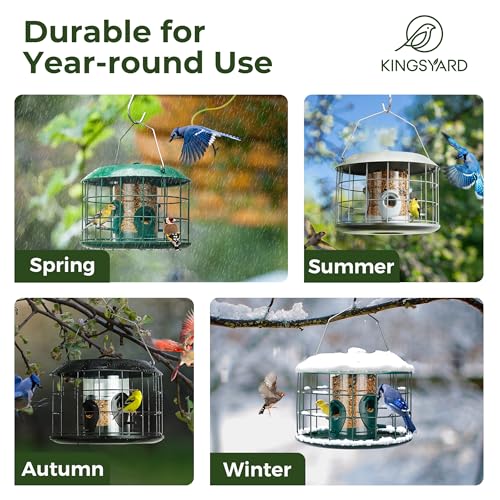 High Capacity & Versatile : 4 feeding ports are distributed around tube, 360 degrees to attract birds to feed. With a capacity of 1.5 lbs, it can hold a variety of bird food, such as mixed seeds, sunflower seeds, peanuts, yellow mealworms and so on
