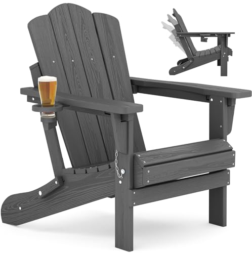 INTEGRATED SPILL-RESISTANT CUP HOLDER: Your Adirondack chair with cup holder features a 180° rotating design that securely holds drinks up to 3.1". Keep beverages within reach and minimize spills—ideal for iced tea, coffee, or outdoor refreshments.