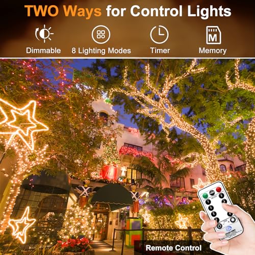 Smart Christmas String Lights: Including 1 steady on +7 Variable Lighting Modes(Combination/In Waves/Sequential/Slo-Glo/Chasing/Slow Fade/Flash/Steady On). Stay away from single lighting mode! Whether you are hosting a lively gathering or enjoying a quiet evening under the stars, variable Lighting Modes allows you to set the perfect mood for any occasion.