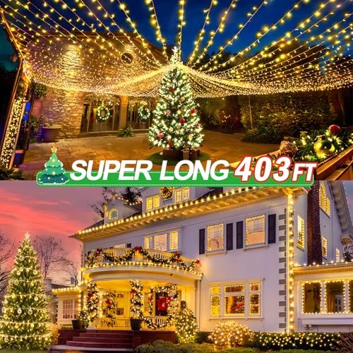 403FT Super Long and 1000LEDs Super Bright: The 403ft Christmas lights with 1000LEDs beads, and 9.84ft plug cord, which can be enough to wrap around and decorate a 15ft Christmas tree, no need to extend. Upgraded higher brightness LED bulbs make each LED beads shine 360 degrees but non-dazzling, to create a cozy, romantic and festive atmosphere for Christmas, Party, Wedding, Stage or Family Dinners. As a holiday decoration, KNONEW Christmas string lights is really Excellent Value.
