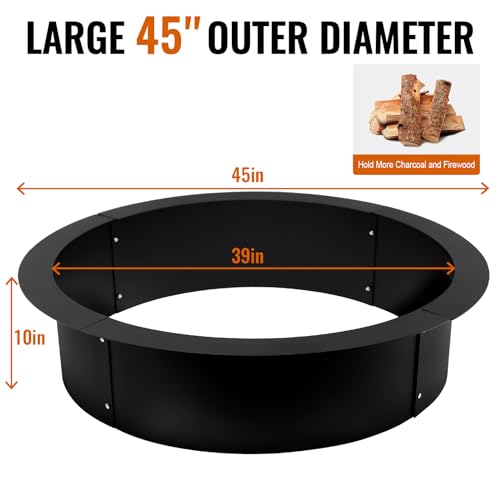 ?????Large Size?With 45 inches outside and 39 inches inside diameter, the larger area is better for building a fire. The round fire pit ring is made of heavy-duty, thick steel metal with a large diameter, perfect for creating a brilliant, uniform flame.
