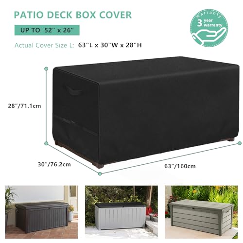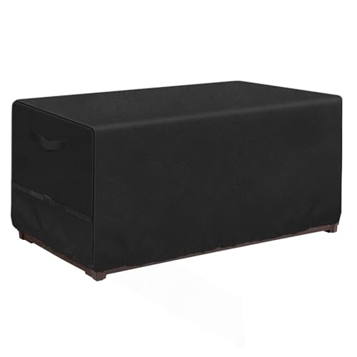 ?Heavy-Duty Waterproof Material?-Patio Deck Box Cover made from 600D oxford fabric, this heavy-duty, Deck Box Cover can withstand 10,000mm of water pressure, also UV-resistant, tear-resistant and fade-resistant, better protect your furniture from harsh environments such as strong sunshine, rain, snow, dust and more. Added UV-stabilized coating and water repellent coating, so the water will not penetrate, and it can slide off quickly, keep a dry surface.