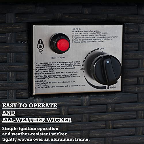 ?50,000 BTU Heat Output - This outdoor fire pit propane table produces a heat output of 50,000 BTU, providing plenty of warmth for you and your guests.