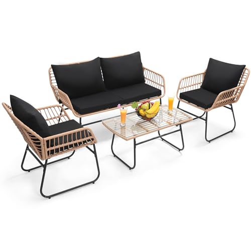 ?Easy Assembly & Maintenance? Our 4 piece patio furniture set is designed for hassle-free setup, with clear instructions that make assembly a breeze. The low-maintenance design features weather-resistant wood and removable cushion covers, ensuring that your set stays pristine with minimal effort, leaving you more time to enjoy your outdoor oasis.