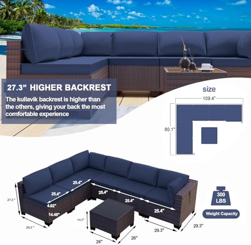 Combination Flexibility:The Kulavik outdoor patio furniture set includes a 4 middle sofas,2 corner sofa and a patio umbrella.Whether it's a balcony,poolside or lawn,they all blend in perfectly at will,allowing you to create an outdoor meeting area that is both functional and beautiful as you wish.
