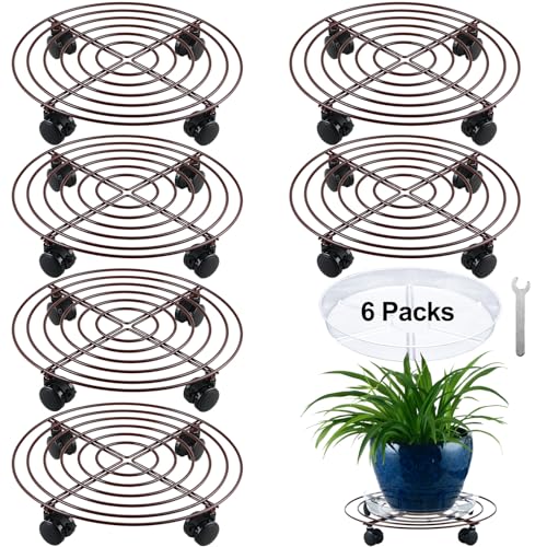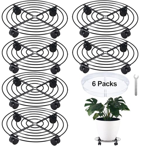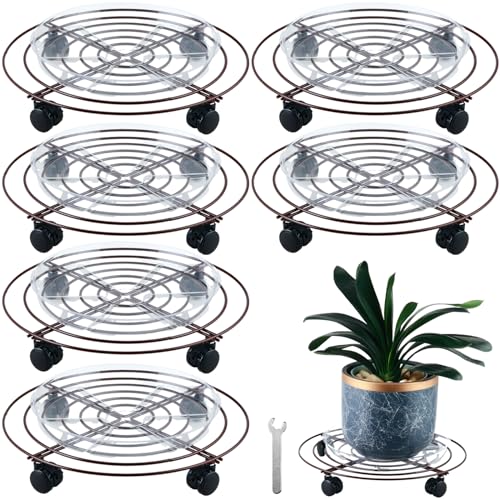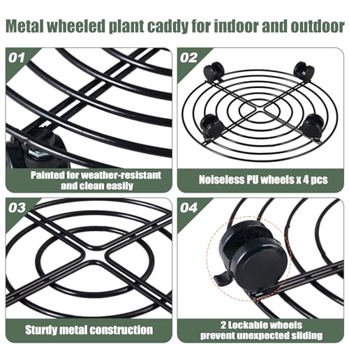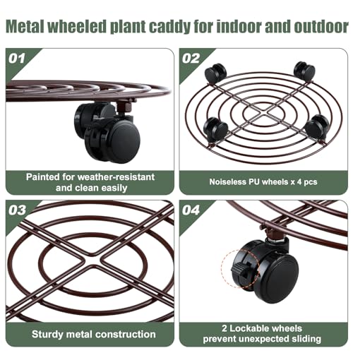 KvyusFlourish Large Metal Plant Caddy with PU Wheels