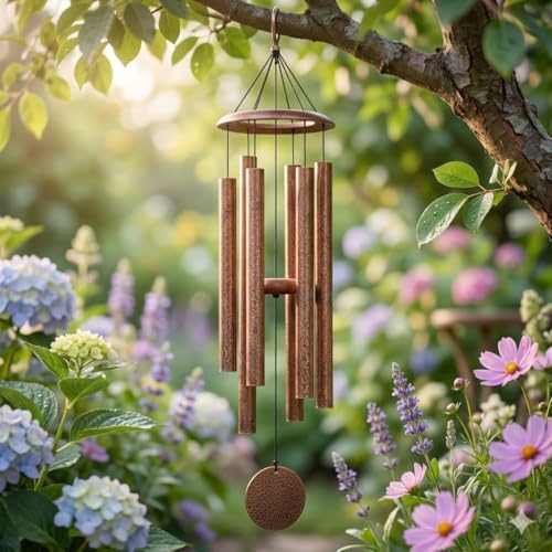 Garden deep tone wind chimes for outside - Hardened aluminum with corrosion-resistant finish to resist water and wind damage for long lasting beauty even in the harshest climate.