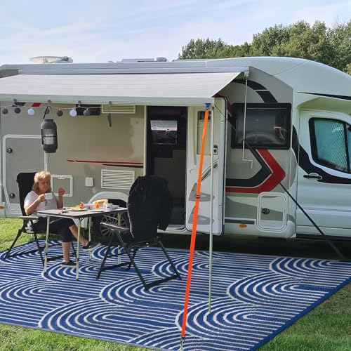 [Lightweight & Portable]Our RV outdoor rug is woven from lightweight plastic straws and easily folds down to a compact size to fit in the included carrying bag. We provide you with 4 stakes to help you secure the mat in place. This camper rug will reduce the burden and fatigue of your outdoor trips and give you enough space to enjoy more fun with your family and friends.