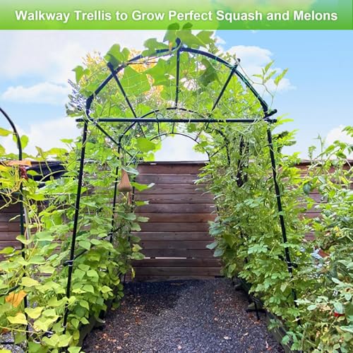 Large Arch Trellis -- Ideal for flowers, grapes, cucumbers, melons and gourds that hang overhead. Worked perfectly to train the pumpkins and squash up and over, makes a great archway for climbing vines or even roses. A wonderful way to grow winter squash up off the ground