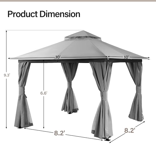 ?Ventilated Double-Roof?: The ventilated double-roof design is attractive and functional, providing ventilation to keep the interior cool and keeping mosquitoes away with nettings between the tops. Perfect for outdoor events like parties and gatherings with family and friends. Having a comfortable and shaded outdoor space to enjoy during the warmer months is essential.
