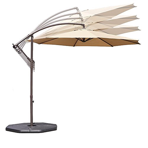 ENHANCED STABILITY: A large wind vent at the top allows cool air to flow through, while the cross base and 2 pole knobs add optimal support and stability when the wind blows; Note: Do not use without umbrella base weights. Recommended weight 100lbs or more.