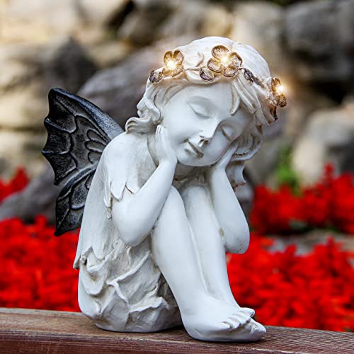 Solar Garden Decor:There is a solar panel on Angel’s back and 4 LED powered light installed on Angel’s Halo.Just press the light button to “on” position,it will auto charge during the day and light up at night.The 4 LED lights are like tiny stars at night,place it in the garde centerpiece and it will illuminate your garden and make everyone happy all the time.