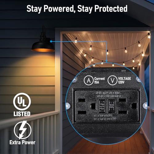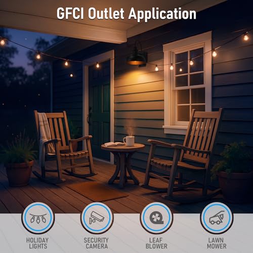 Dual Outlet Convenience: The gooseneck wall light is equipped with 2 built-in GFCI outlets, providing safe, reliable power for outdoor tools like leaf blowers, lawn mowers, and electric grills. No need for extra wiring or wall outlets—save time, effort, and installation costs