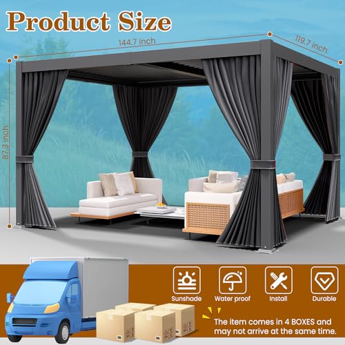 Spacious Coverage Area: Measures 10 feet by 12 feet, providing 120 square feet of covered outdoor living space perfect for entertaining guests, outdoor dining, or creating a comfortable relaxation zone in your garden, deck, or backyard
