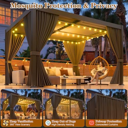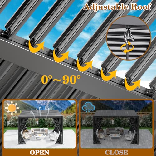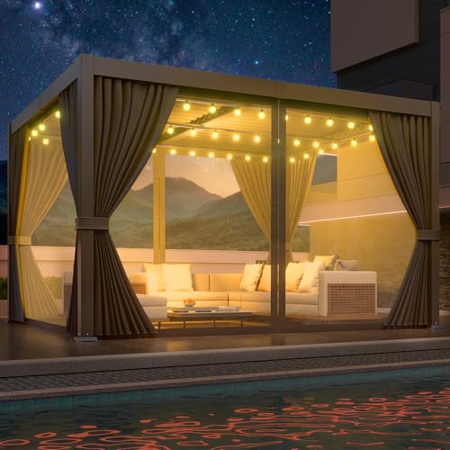 Complete Weather Protection: Includes removable curtains and netting that provide privacy, protection from insects, and additional shade when needed, while the integrated gutter system efficiently channels rainwater away to keep your patio dry