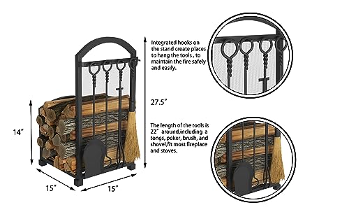 Save Space: Modern styling hearth center with intricate roped detail comes complete with shovel, broom, poker and tongs. Only one product that fireplace rack with 4 tools to resolve all of your daily use. This is the perfect wood holder for a smaller area.