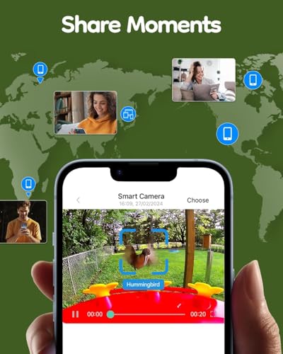 Advanced AI Reorganization for Humming Bird Species - The smart Hummingbird feeder camera with the advanced AI algorithm identifies 95% of the hummingbirds species and check details of the bird species in the app, provide wildlife hummingbird education for all ages. (Basic Cloud service subscription needed for the birds AI service, One month free trial for all new users)