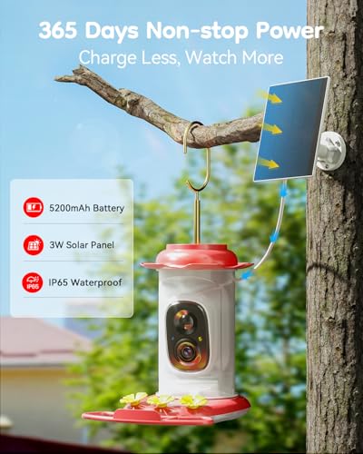 Free Store & Perfect Gift for Bird Lovers with Lifetime Guarantee-Hummingbird feeders camera will record the birds videos and store in the Cloud up to 3 days for free, and you can extend it by subscription. Share lovely moments with friends or family, the hummingbird feeder camera is a great outdoor present for kids and the elderly. Enjoy a worry-free return and exchange policy within 30 days of receiving it.