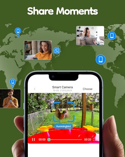 Advanced AI Reorganization for Humming Bird Species - The smart Hummingbird feeder camera with the advanced AI algorithm identifies 95% of the hummingbirds species and check details of the bird species in the app, provide wildlife hummingbird education for all ages. (Basic Cloud service subscription needed for the birds AI service, One month free trial for all new users)