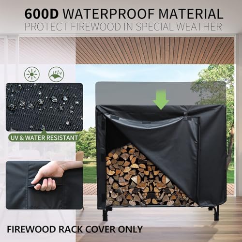 ?Optimal Material?- Heavy-duty 600D Oxford fabric with UV-resistant coating, waterproof and durable, protects firewood from rain, snow, exposure and other weather.