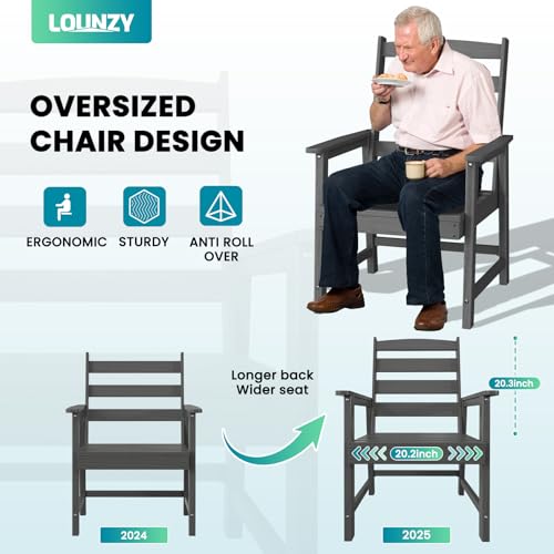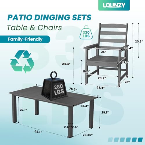 LOW MAINTENANCE FOR INDOOR&OUTDOOR USE - Crafted from high-quality HDPE Material, LOUNZY patio dining sets offer a blend of strength and aesthetic appeal. Features a wood-textured design, giving it a classic look that works well both indoors and outdoors. Durable and easy to clean, simply wipe the surface with a damp cloth for effortless upkeep and lasting beauty