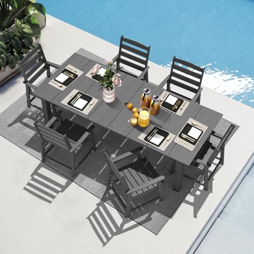 7-PIECE PATIO DINING SETS - LOUNZY outdoor dining sets feature an extended table and 6 chairs, suitable for family gatherings and parties. The modern designs seamlessly blend with various outdoor settings, adding charm and elegance to your patio or garden