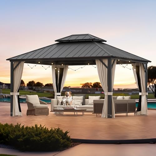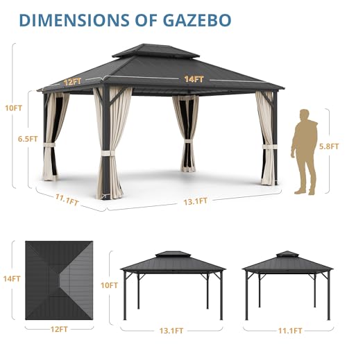 Spacious 12'x14' Entertainment Area: With 10' ceiling height, easily accommodates over 10 people for a gathering or comfortably seats 8-12 adults. Perfect for backyard BBQs, poolside relaxation, or creating an elegant outdoor living space.