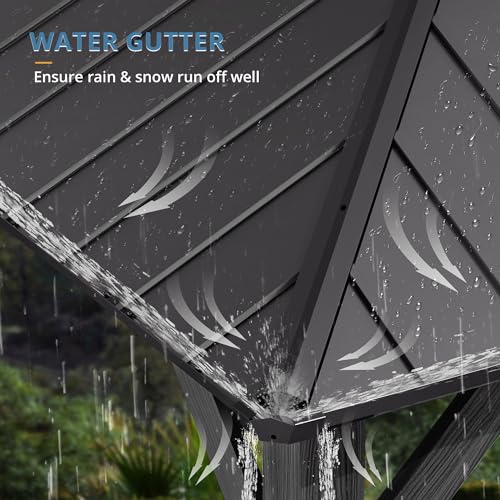 Large Space Pavilion: Measures 12' L X 14' W X 10' H; accommodates dining sets for over ten people or conversation sets for six to ten people; versatile for various occasions, backyards, awns, poolside and decks; suitable for outdoor barbecues and parties