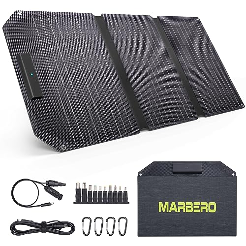 ?Portable & Foldable?This MARBERO 30W solar panel weighs only 1.59 lbs, and the folded size is 9.6*12.4*0.87in, which is easy to carry, hang and store. Won't take up too much space in your bag, provides endless power for camping, outdoors, garden, RV and caravan in the sun
