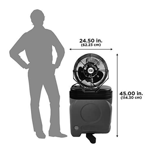 Portable Misting Fan with Tank: Experience the convenience of our 20-gallon tank, allowing you to move freely without the constraints of hoses. Perfect for those looking for a portable misting fan with tank for outdoor activities.